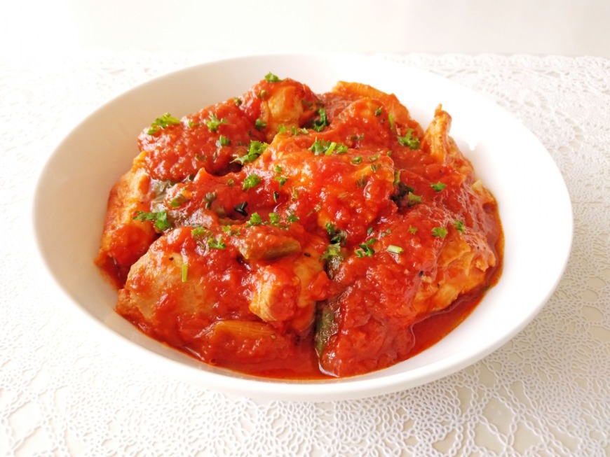 白ワインビネガーと鶏肉のトマト煮込み