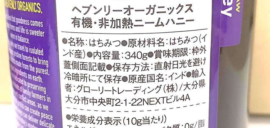 - 原材料名の欄に「はちみつ」以外の記載がない