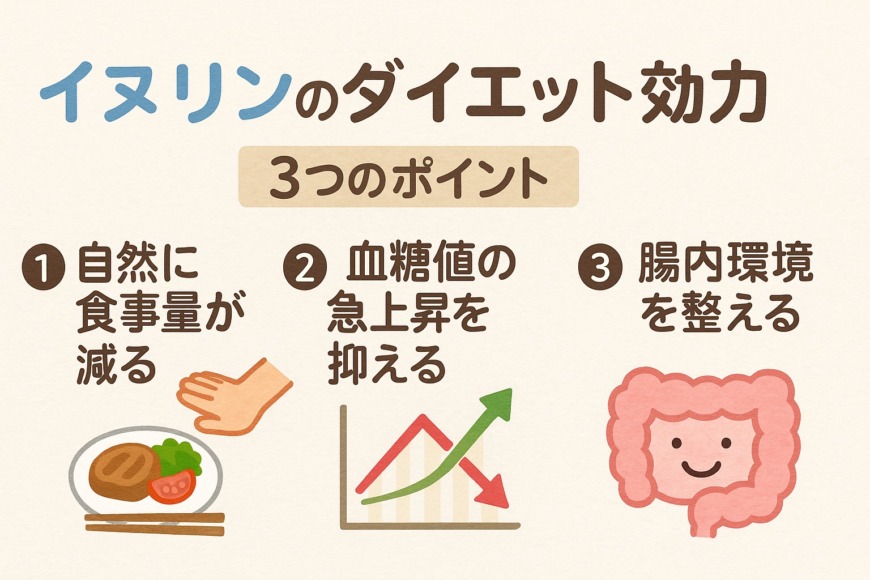 イヌリンは、摂り方を工夫すればダイエットの強い味方になります。ここでは、特に注目すべき3つの効果を紹介します。