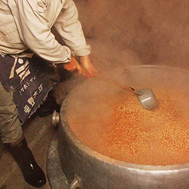 味噌は大豆を煮る・潰すなどして加工し、味噌蔵と呼ばれる冷暗所で熟成させる方法で作られています。