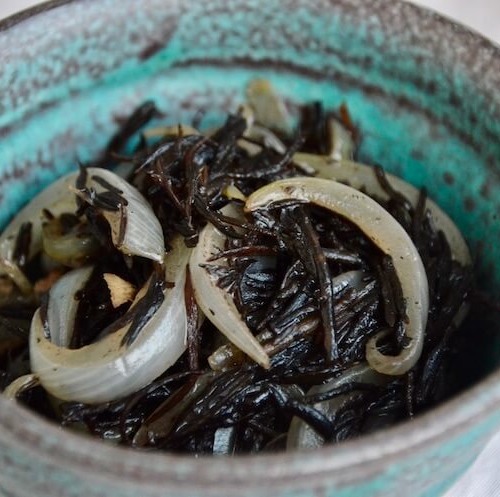 - ひじきと梅酢としょうゆを加え、3分くらい炒めればできあがり。