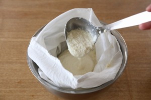 ザルにこし布をセッティングする