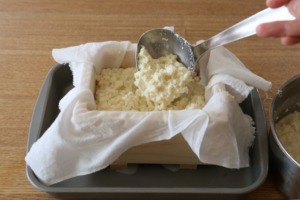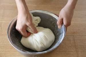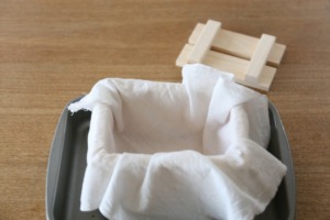 豆腐箱にさらし布をセッティングしておく