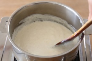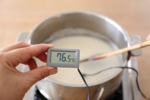 - 75-80度になるまでゆっくり温めていきます。 この時の温度が大変重要になります。温度計などを使用して温度を計りながら作業をしましょう。