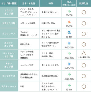 種類によって効果が異なります。フラクトオリゴ糖は便秘改善に効果が高く、ガラクトオリゴ糖は免疫サポートが期待できます。目的に応じて使い分けることが大切です。