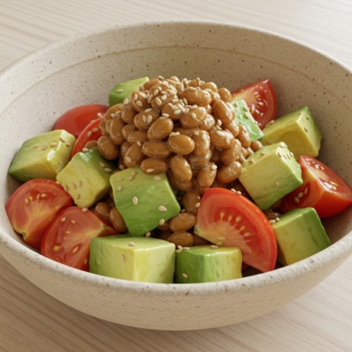 - 亜麻仁油香るアボカド&トマトの納豆ポキサラダ