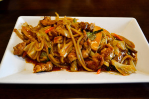 - 水に片栗粉を混ぜて作った水溶き片栗粉を入れ、ひと炒めして完成。
