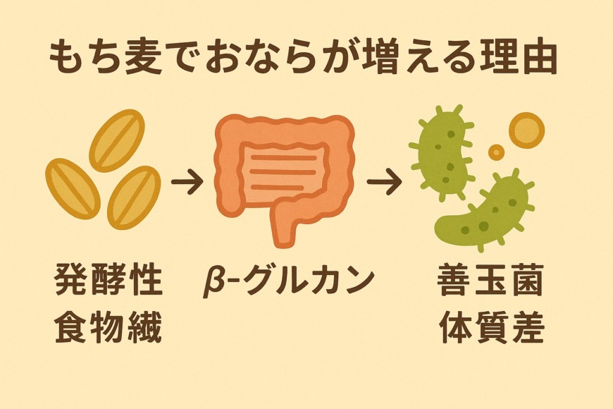 この記事では、もち麦に含まれる「発酵性食物繊維」や「β-グルカン」が腸内でどのように作用するのかをわかりやすく解説。さらに、ガスの発生を抑えながら腸内環境を整える具体的な食べ方や、避けるべき食材の組み合わせなども紹介します。
