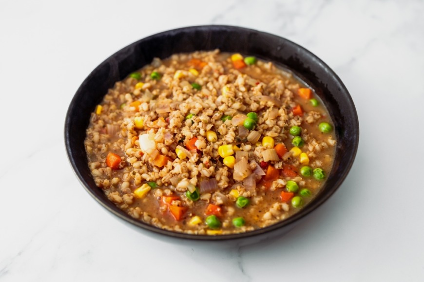 プチプチとした食感が楽しく、食物繊維たっぷりのもち麦が満足感をプラス。野菜もたっぷり入っているので、子どもや家族にも安心して食べさせられます。