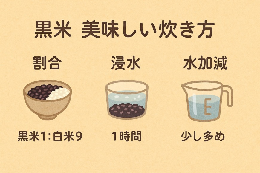 黒米のおいしさを最大限に引き出すには3つのコツがあります。