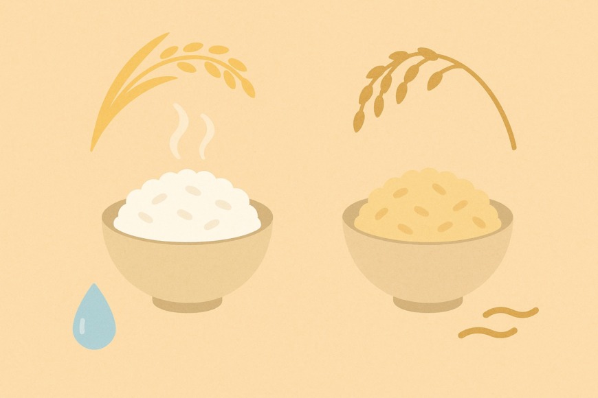 時間がたつと、お米は少しずつ乾いて水分が減っていきます。そのため古いお米は水を吸いにくくなり、炊いたときにご飯が少し硬めになったり、粘り気が弱くなってパサついた感じがしたりします。これが新米と古米でよくいわれる違いのひとつです。
