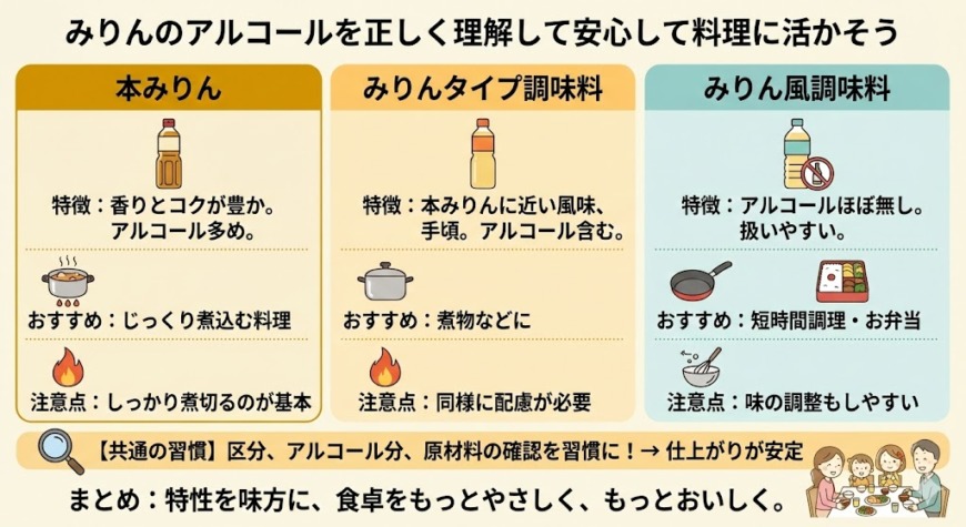 みりんのアルコールを理解すると、安心して料理に使えるようになります。