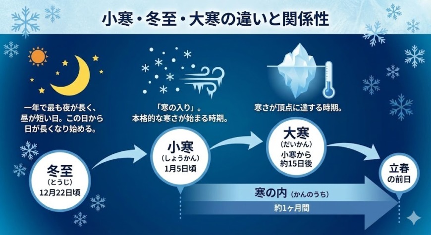 冬に関連する言葉に「冬至」と「小寒」があります。