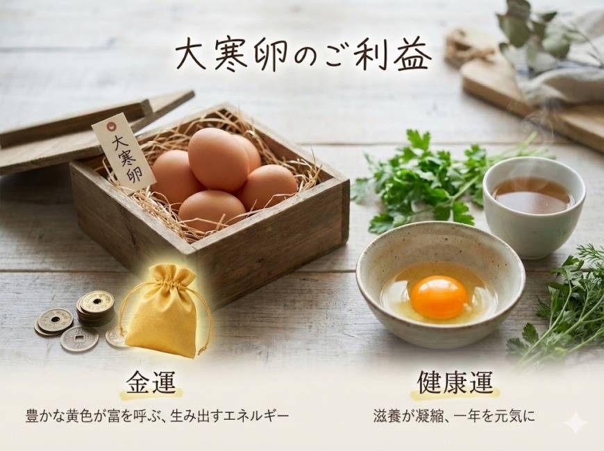 大寒卵が縁起物として珍重される理由は、主に「金運」と「健康運」にあります。