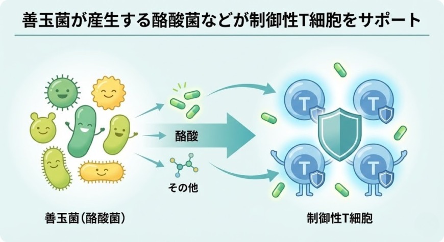 善玉菌が産生する酪酸菌などが制御性T細胞をサポート