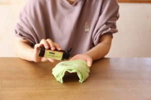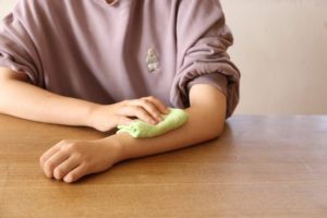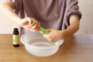 - 絞ったガーゼにびわの葉エキスを数滴ふりかけて浸み込ませます。
