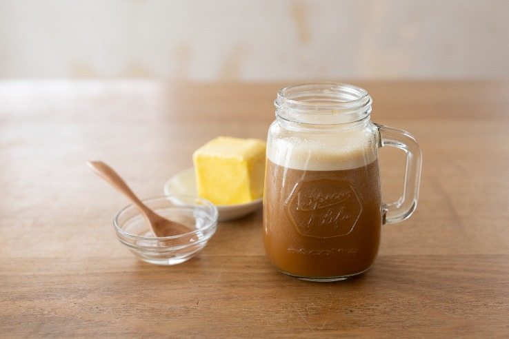 バターコーヒーとは、コーヒーにグラスフェッドバターとMCTオイルを加えた飲み物です。飽和脂肪酸や中鎖脂肪酸が含まれており、エネルギー源となるだけでなく、満腹感や集中力を高める効果が期待できます。