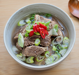 - 水、コチュジャン、鶏がらスープ、にんにくを加え軽く混ぜ合わせる
