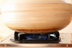 - 【火加減】最初は土鍋の蓋を1cmほど開けた状態で、中火にかけます。沸騰したら、土鍋の蓋を閉め、30分ほど弱火にかけます。蒸気が弱くなったら火を止めます。
