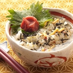 - 2を混ぜ、お好みで明太子、大葉をトッピングする