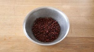 小豆を煮る際は、浸水させなくても大丈夫ですが、渋抜きのために、煮る前に小豆とひたひたの水を鍋に入れ強火にかけて沸騰したら一度ざるにあげましょう。