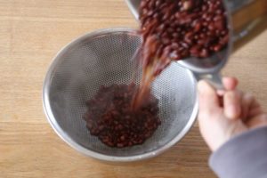 - 30分ほど煮て、小豆と煮汁を分けたら完成です。