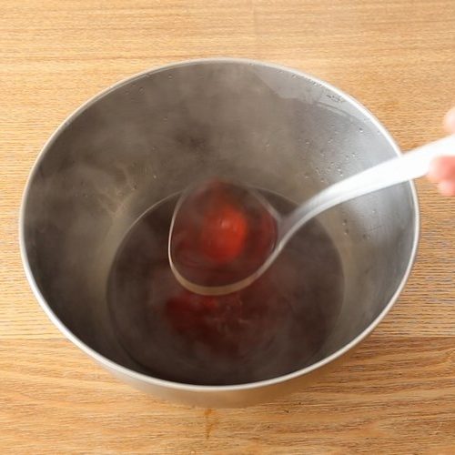 - 大きめの鍋に小豆と水を入れて火にかけ、沸騰したら弱火にしてコトコト煮ます。