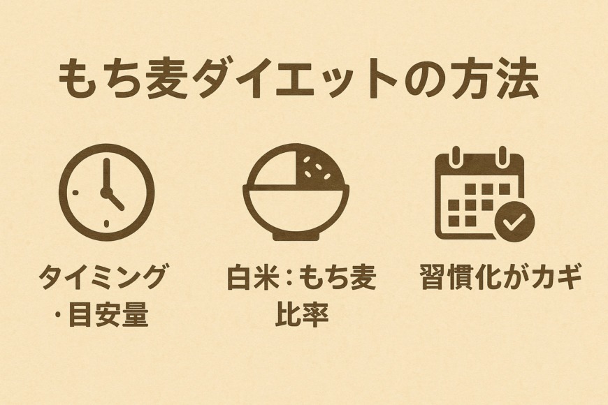 タイミングを見直すだけでも、もち麦の効果はぐんと高まります。食べる時間帯を意識することが、ダイエット成功の近道になります。