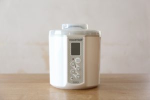- 全体が混ざったらヨーグルトメーカーに入れ、60度・8時間にセットして時々かきまぜます。