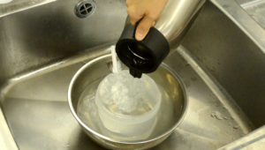 - 牛乳を冷蔵庫から出し、湯煎で40℃近くまで温めます。