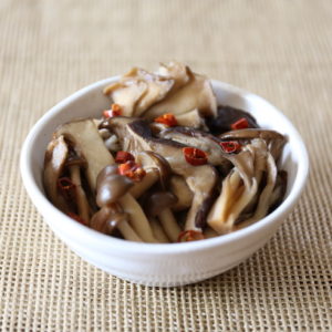 - きのこと唐辛子をそれぞれ食べやすい大きさにカットします。