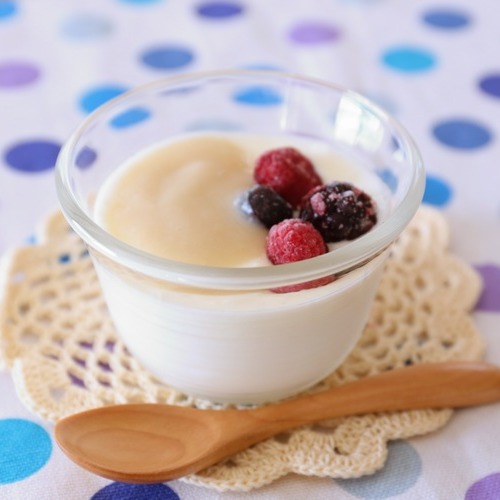 - ヨーグルトに甘酒を加え、しっかりと混ぜ合わせたら完成です。