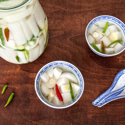 - 切った大根に砂糖と塩をもみ込む。
