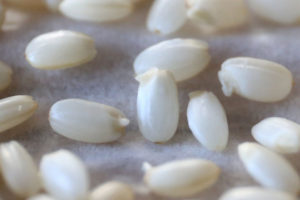 玄米を水に浸けて発芽させる「発芽玄米」。