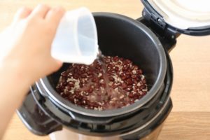 小豆をしっかり60度まで冷ましてから麹を混ぜてください。