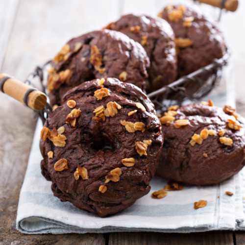 むっちりと食べ応えのあるベーグルに、チョコチップとカカオニブを入れてさらに満足度アップ。お好みでフレークなどをトッピングするとより美味しくなります。