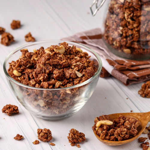 カカオニブの香りと苦みがナッツの味と一体になり、調和した美味しさに。 温めたミルクをかけて、ヨーグルトと一緒に、そのままでも美味しくいただけます。