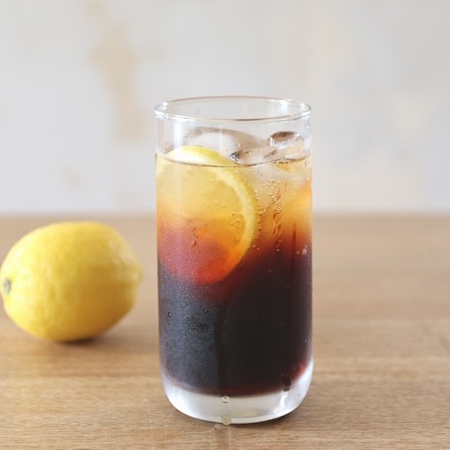 フルーティーでまろやかなバルサミコ酢を炭酸で割るとさわやかなドリンクに。レモンを加えるとさらにさわやかな口当たりになります。