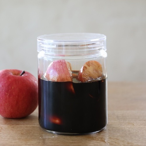 - りんごをガラスの容器に入れ、バルサミコ酢を注ぎます。