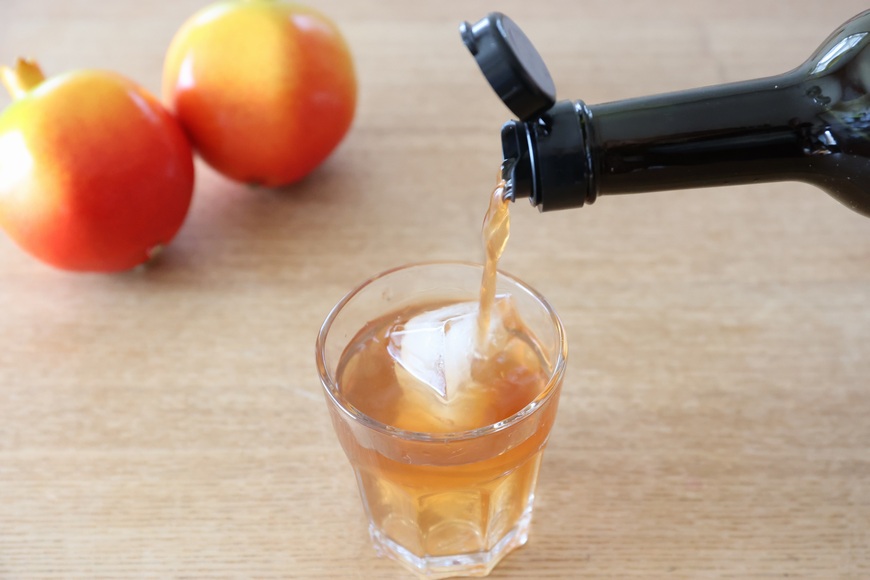 「有機ザクロビネガー」は、有機ザクロの絞り汁を酢酸発酵させて作った100%の果実酢。調理用のお酢として料理やドレッシングに使うほか、3~5倍に希釈して飲むのもおすすめです。炭酸水や牛乳、豆乳で割る、飲みやすさを求める方はハチミツを入れる、果物・野菜ジュースで割るなど、好みに合わせて調整できます。