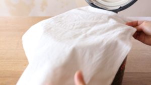 - 炊飯器の蓋は開けた状態で布巾をかけて、炊飯器の保温モードのスイッチを入れます。2~3時間おきに全体を混ぜて55〜60度を保ちながら8~10時間発酵させます。