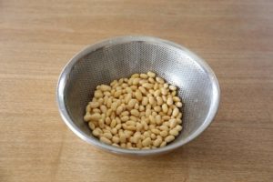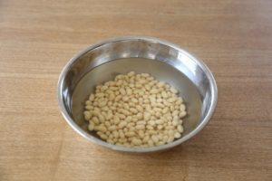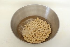 - 大豆をよく洗い、一晩水に浸けておきます。