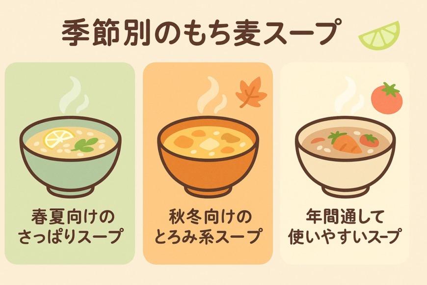 ここでは季節別のもち麦スープを以下の観点から紹介します。