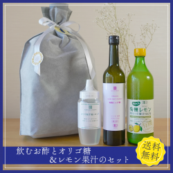 ヘルシーに贅沢なひととき!かわしま屋のギフトセットです。飲むお酢とオリゴ糖、レモン果汁をセットにして、化粧箱でお届けします。