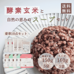 厳選された酵素玄米、そして自然の恵みが詰まった3種類のスープが、温めるだけでお召し上がりいただけます。無理なく、美味しく、健康的な食習慣を始めてみませんか。