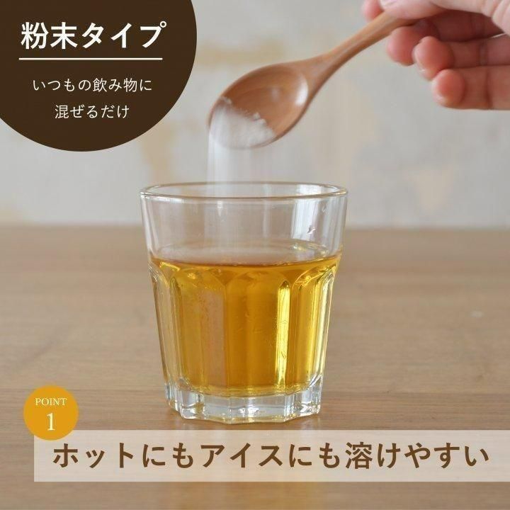 冷水でも溶けるので、いろんな飲み物にも混ぜることができるため、いつもの飲み物にさっと足すだけで毎日欠かさずに摂取できます。