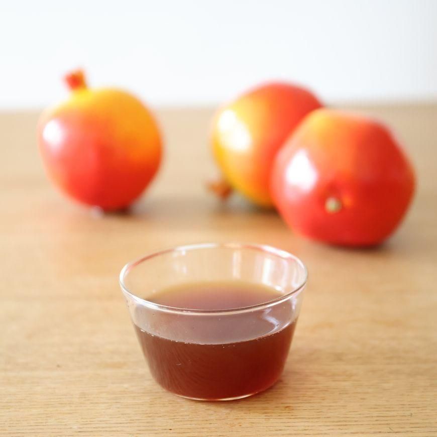 ザクロ酢はウィスキーのような赤茶色をしており、ザクロ特有の香りと酸味が特徴です。