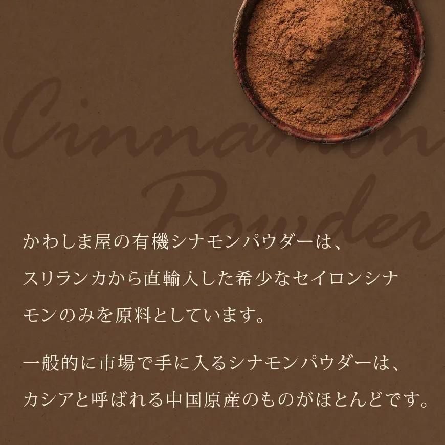 有機セイロンシナモンパウダー 100g|スリランカ産・有機JAS認定品の、優しく上品な風味のシナモンパウダー -かわしま屋-【送料無料】*メール便での発送*