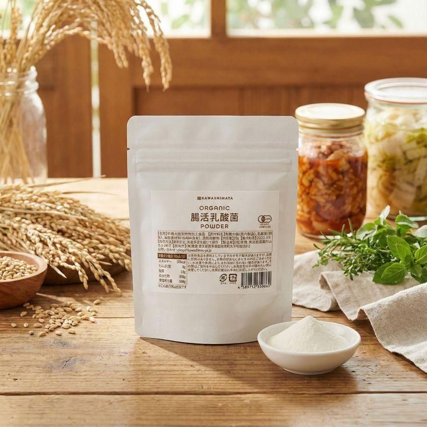 かわしま屋のオーガニック腸活乳酸菌パウダーは、手軽に良質な植物性乳酸菌が摂れます。