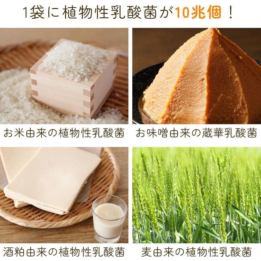 有機JAS認証済みの植物性乳酸菌を配合しました。日本人になじみ深い、味噌や漬物、日本酒など、日本の伝統的な発酵食品由来の乳酸菌です。1杯(20g)で約7000億個の植物性乳酸菌を摂取し、腸内の善玉菌にもアプローチします。